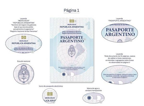 En cuanto al pasaporte argentino, las nuevas versiones contarán con 34 páginas y una hoja de datos personales de policarbonato personalizada con grabado láser, lo que aporta mayor resistencia física y dificulta la falsificación.
