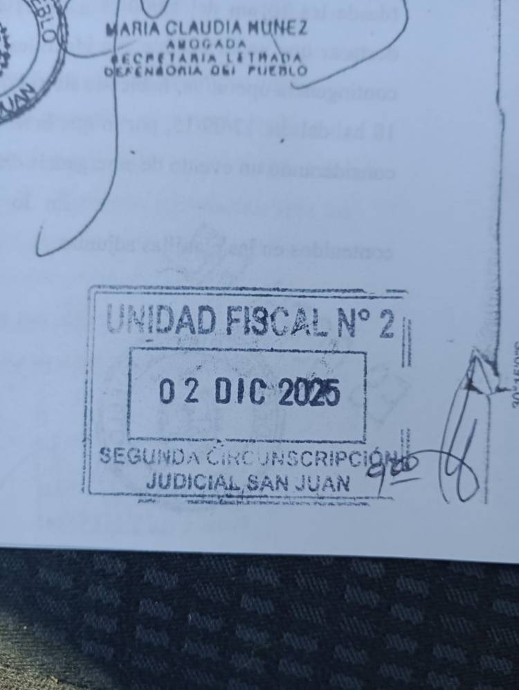 La Asamblea Jáchal No Se Toca, presentó ante la UFI del Norte, el resultado de los análisis realizados por la UNCuyo en fecha 7 de noviembre de 2025 y que fueron solicitados en forma privada por los integrantes de la agrupación ambientalista. Esta presentación se llevó a cabo en la mañana del día martes 2 de diciembre del corriente año.