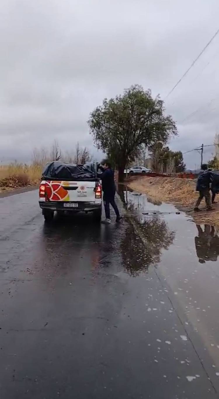 Los equipos técnicos de la Dirección de Emergencia y Políticas Alimentarias del Ministerio de Familia y Desarrollo Humano, en estos momentos están haciendo trabajos de relevamiento en terreno en diferentes zonas de Pocito, Rawson, Calingasta y Ullum.